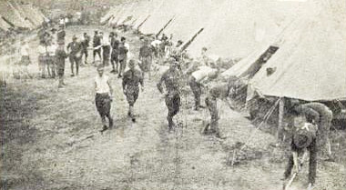 | The description on this photo, written by a soldier at the time, reads: "Co. D, 151 Infantry Leaving Hattiesburg June 4, 1915 for 'over there.' " |