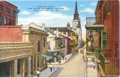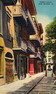 | Above: Moss-draped Oaks, City Park, 1940's Left: Pirate's Alley, 1920's |