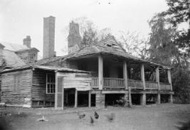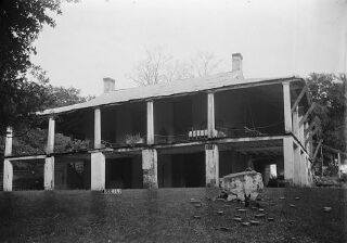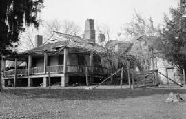 | Above and below, Windy Hill Manor was constructed in the 1790's by Benijah Osmun. It was made famous by guest, Aaron Burr, who traveled to Natchez shortly after killing Alexander Hamilton in a duel in Washington. While staying at Windy Hill, awaiting a trial on charges of treason, he began a courtship with a neighbor's daughter, Madeline Price. Before they could marry, sentiment in the area turned against him and he had to escape in fear of his life, with an angry mob not far behind him. In 1817, Windy Hill was sold to Gerard Brandon, who would later become Mississippi's first native-born governor. The home stayed in the hands of daughter, Elizabeth's (Stanton) descendants until the 1940's, when the last of the line, 3 spinster sisters, struggled to keep the home together. However, as you can see below, it literally fell down around them. The last sister died in 1945 and it sat abandoned until 1965, when it was demolished. The photos below were taken in the 1940's. |