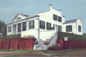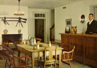 | Connelly's Tavern, built ca 1798, on Ellicott's Hill, is above and the four interior photos below are rooms in the tavern (taken ca 1950's). It was on this hill, in 1797, that Maj. Andrew Ellicott, on orders from George Washington, raised the American flag, in defiance of the Spanish authorities. The Natchez Trace ends directly below the tavern. Restoration is a project of the Natchez Garden Club. |