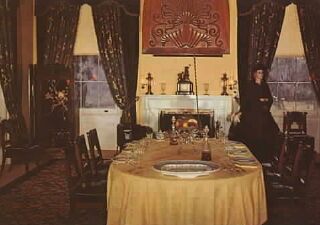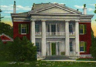 | Above, Melrose, still standing, postcard ca 1935; below, Melrose's dining room in the 1950's. The house was built in the 1840's by John McMurran. |