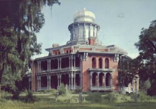 | Above, Longwood, below, its dining room. One of the best known houses in Natchez, it was being constructed when the Civil War started and northern workmen dropped their tools where they stood and left to go back home. It was never completed and Dr. Haller Nutt, wife, Julia, and family, moved into the only finished area, which was the basement. Dr. Nutt died before the war was over and his family and descendants occupied the basement for several generations (but, a very grand basement!) . The family cemetery is on the grounds. |