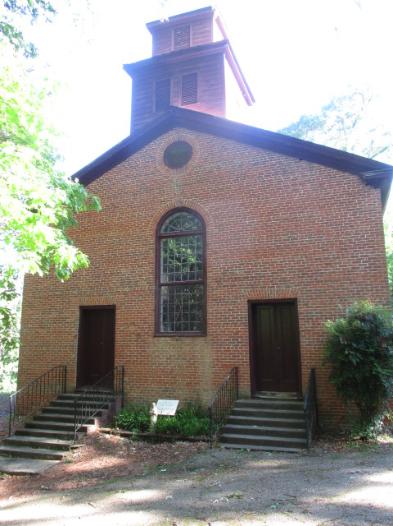 | This church was built in 1837 by the Methodist Congregation of Rocky Springs. Earlier, the town had been a station for a circuit-riding preacher who stopped by once or twice a month. The church remains as it was in 1837, except that in 1901, the old belfry was removed. In 2010, the ownership of the church building and property was transferred from the Methodist Conference to the Friends of Rocky Springs Church and that group maintains the the church and the cemetery. Each spring a homecoming service is held at the church. |