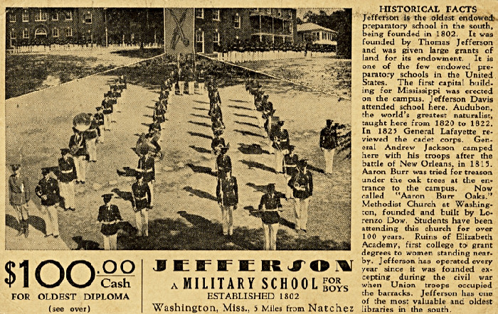 against the United States in 1807." Jefferson Military College, Washington, Adams Co., MS