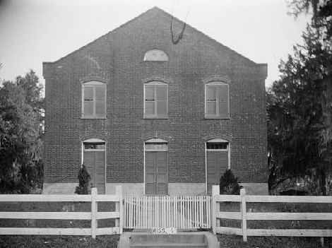 | The Methodist Church in Washington was organized in 1799 by Rev. Tobias Gibson. It was the first Methodist Church organized in Alabama, Louisiana or Mississippi. The first building was constructed in 1805 and burned in 1810. Another building was built in 1812 and used until this building was constructed in 1828. It was in the second building, located on the grounds of Jefferson College, that the Mississippi Statehood Convention was held in 1817, to draft Mississippi's first constitution. Washington Methodist Church is still active, and has the oldest continually meeting congregation in the state and the second oldest church building in Mississippi. The black and white photographs were taken in 1936. |