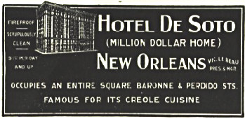 | Left, Jung Hotel, 1940's; above, Hotel De Soto, 1917 |