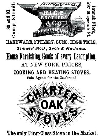 | The ads on this page appeared in "Visitor's Guide to New Orleans," published in 1875. |
