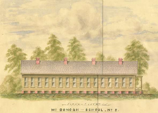 Above & below, McDonogh No. 5, Slidell Street - Part of John McDonogh's legacy and designed by William Freret, this school opened in 1875 as a grammar and primary school for African American students; in 1909, it became a school for white students. The building is no longer standing, it was located where the Behrman School gym sits today. Below is an architect's drawing. |