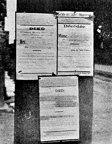 | One of the things that interested me most was the photo of the death notice above. I'd always thought that it was probably the custom in most cities at that time to post death notices in public places as a way of letting people know. |