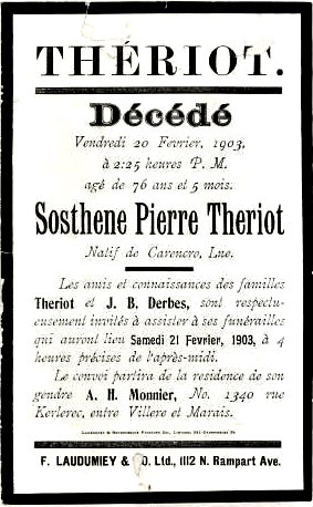 | But the thing that interested me about this particular notice was the funeral home listed at the bottom: F. Laudumiey. |