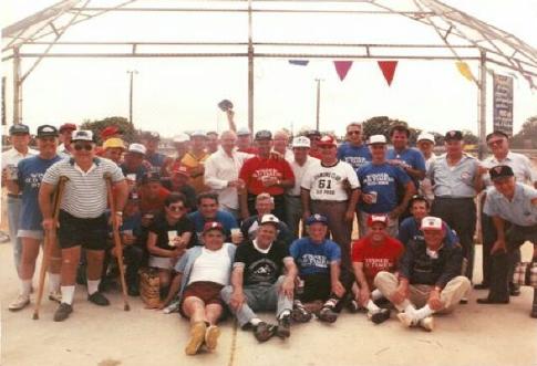 Wisner Old-Timers, 1989, St. Patrick's Park; members had to have been 45 years or older; they played once a year, with a party following the games. |
