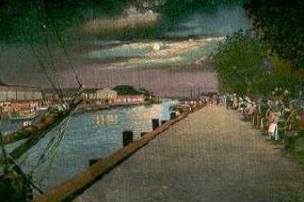 1915 postcard, "Spanish Fort and Bayou St. John by Moonlight" |