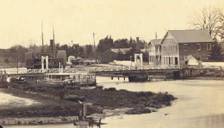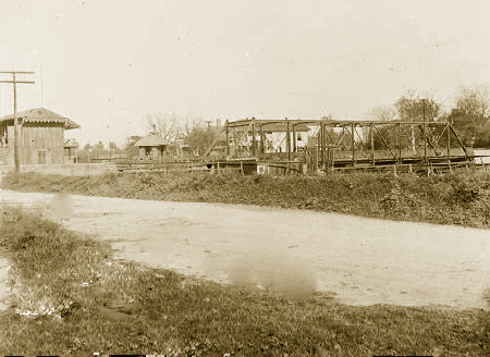 The photo above and the two below show the bridge near the place where Esplanade reached Bayou St. John; New Orleans City Railroad operated the bridges on Bayou St. John at this time; ca. 1870 - 1890. |