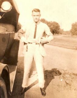 | Fred's uncle, A. C. "Mike" Curren, and his new car, 1920. |
