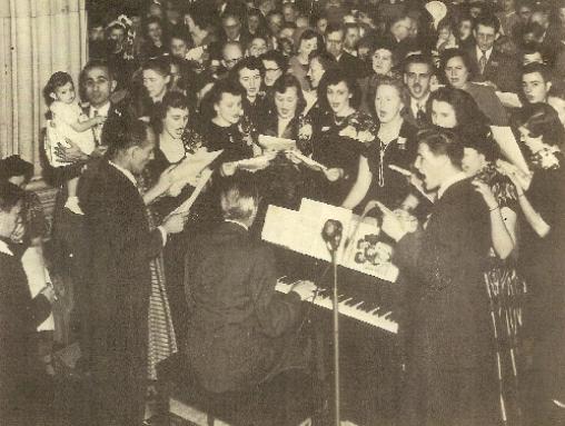 | Above and below, Christmas party, First National Bank of Commerce, Baronne Street, 1949. |