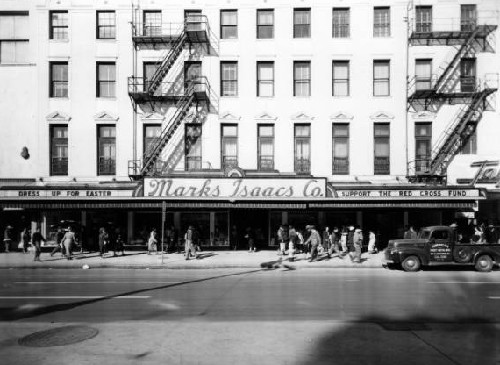 Marks Isaacs department store, Canal Street; store sign on the left reads, "Dress up for Easter;" 1951. |