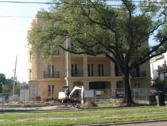 Left, Scheinuk's sporting a for sale sign and looking a bit sad, 2003; right, the condominiums now in place at 2600 St. Charles Avenue. |