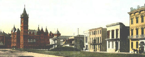 | Far right, original Elks Home; criminal court and parish jail on left; 1900. |