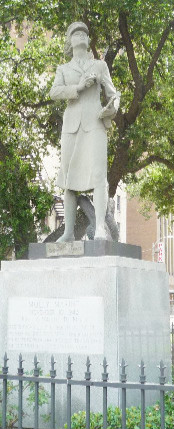 | Current photo of "Molly Marine" monument, Canal Street and Elk Place. The statue was erected in 1943, during WWII, with the inscription, "Free a Marine to Fight" and rededicated in 1966 to honor Women Marines. This was the first monument in the United States of a woman in service uniform; sculpted by Enrique Alferez. |