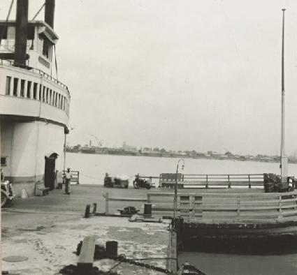 The Algiers ferry at Canal Street landing, looking toward Algiers, 1930's