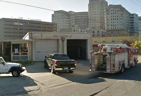 We have 3 time periods - and 2 buildings - for this fire station location at Esplanade Avenue and North Galvez. Above, the firehouse that had been constructed in 1840 is in the process of being demolished. Directly below, the "new" station shown in 1956. |