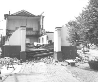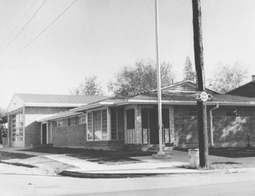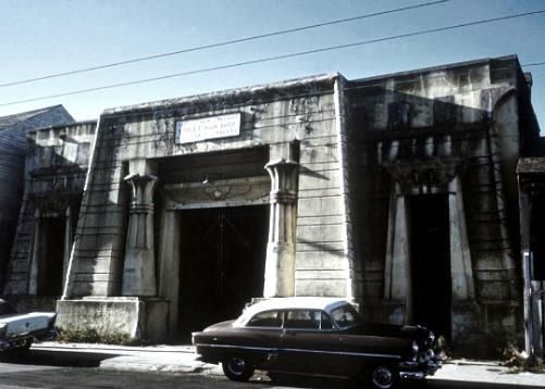 In the late 1800's, the Egyptian Revival style of architecture became popular. It was then that this building on Rousseau Street, in the Uptown section, was remodeled and its distinctive facade added. The photo above was taken in 1897, when it served as the 4th District Police station. Constructed in 1836, this unique building has served many functions in its long history: jail, court, police station, and used by the National Youth Administration, the Salvation Army, the Department of Streets and more. Photo directly below, 1960's. |