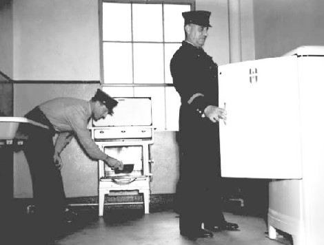 12th District Police Station, 1932: This photo was taken after a tragic incident in which a prisoner who was being escorted to a cell shot and killed police officers. The information on the back of the photo comes from a wire service and states that one trusty and two policemen were killed and that the prisoner surrendered. However, I searched for more info online and found details at the Officer Down Memorial Page, where there are memorials for 3 officers: Patrolman Albert Oestriecher, Patrolman Cornelius Ford and Corporal George Weidert. The website states that the suspect was killed in an ensuing gun battle. Many thanks to Robert Keane for sharing this photograph. |