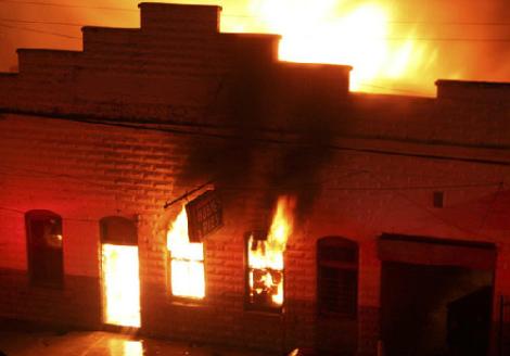 Above, before the fire; below, during and after.. |