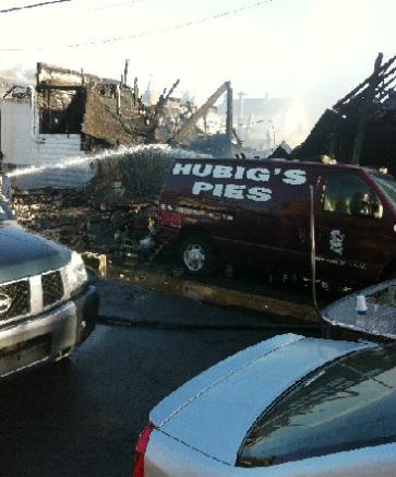Their kindness continued after they were up and running again in 2006, as they went through their neighborhood, distributing pies to people who were working on their houses. And, even on Friday morning, while the ruins of their business still smoldered, they emptied out a van full of pies parked nearby and distributed them to firefighters and others on the scene. |