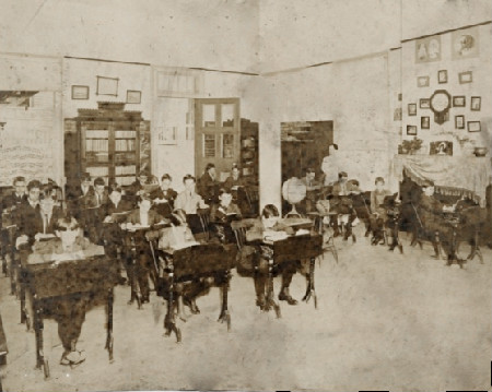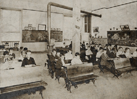 | The photo above and two below were taken in the early 1900's; notice that boys & girls were not in the same rooms. |
