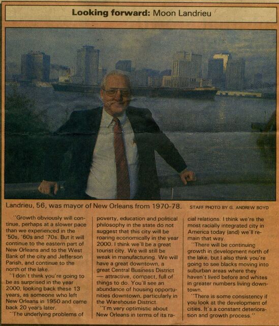 Below: Moon Landrieu makes some predictions about the future of New Orleans, from the Times-Picayune, 1987. |