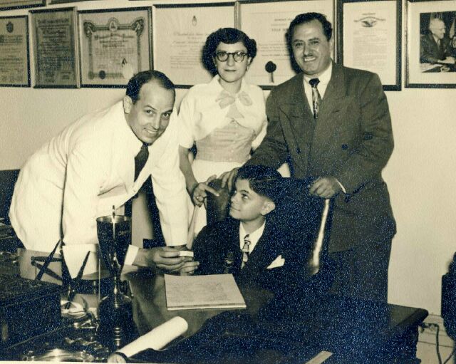 | Mayor Delesseps S. Chep Morrison, left, presents the key to the city to 12 year old Mark Konos, a crossing patrol volunteer who went to the aid of a child injured in a traffic accident, in this photograph taken on May 21, 1952. The incident occurred several weeks earlier at Mark Konos' assigned crossing near the Gayarre School on Almonaster and North Robertson Streets. The youngster also assisted authorities in identifying the fleeing vehicle, which resulted in the apprehension of a suspect. Also pictured are the youngster's parents, Sophie and George Konos. Both are now deceased. George Konos was the owner of Konos Sewing Equipment Company, 531 Decatur Street, New Orleans. |