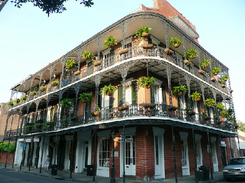 The building on the corner of Royal and Dumaine Streets is probably one of the most photographed houses in the French Quarter. I've seen its image on dozens of postcards. The descriptions mention its graceful beauty and what an excellent example of French Quarter architecture it is. |