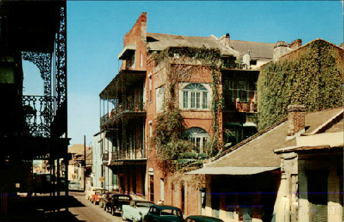 But not many postcards address its history or go into detail about the family who had it constructed. It's actually 3 connected row houses, doors facing on Royal Street. Mrs. Christian Miltenberger had the homes built for her 3 children, several years after her husband's death. |