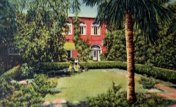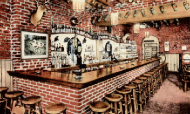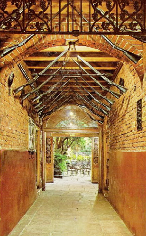 Above, courtyard at 718 St. Peter in the 1930's, when it was a private residence; right, entrance to courtyard at Pat O'Brien's, 1950's; below, a postcard featuring the interior of Pat O'Brien's in the 1940's.