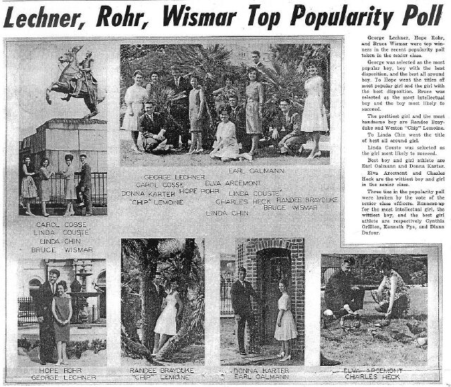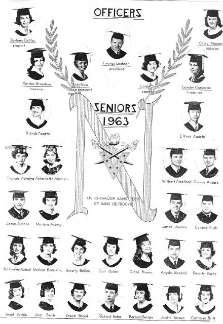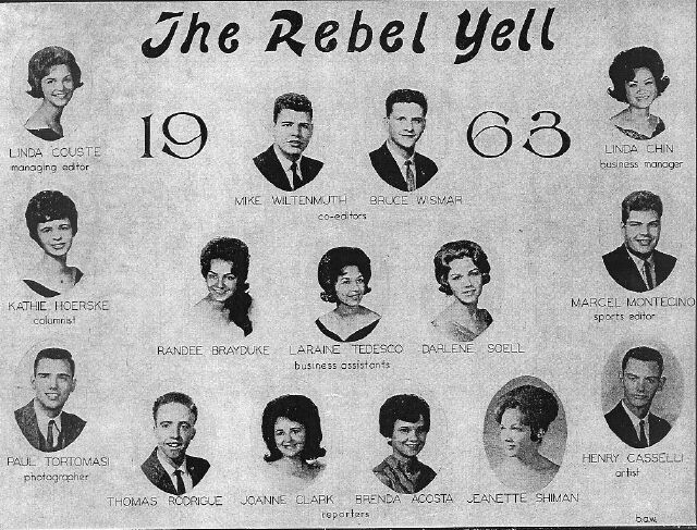 | The 1963 graduating class of Francis T. Nicholls High School is shown in the pictures below from the school newspaper, The Rebel Yell. Since the images are large, I've placed only a few on the page, with individual links to the rest. A brief history of the school can be found at the bottom of the page. I'm so appreciative to Larie Tedesco for sharing these images with us! Larie's picture is in the first image below. |