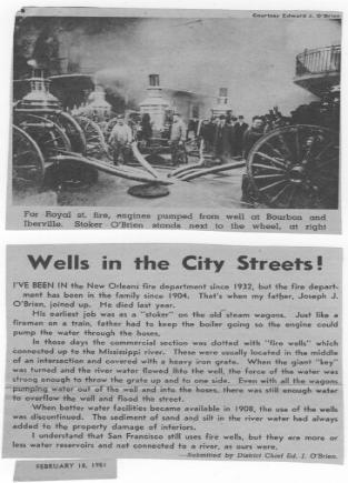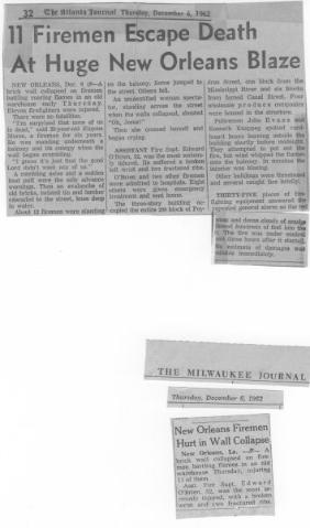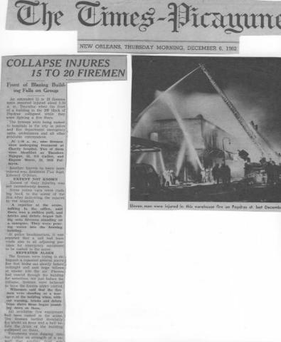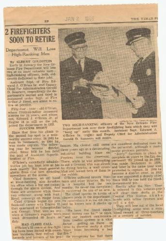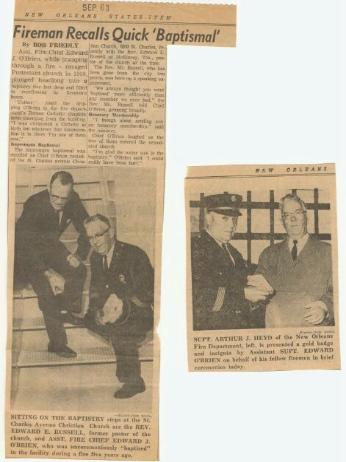 | The O'Brien Family ~ and the ~ New Orleans Fire Department NEWSPAPER CLIPPINGS |
