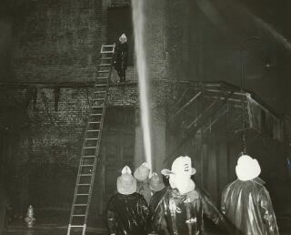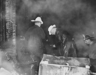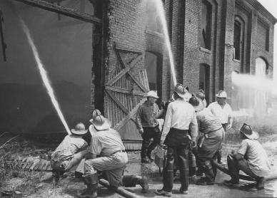 | See another photo & clipping: "Fire Chiefs Cited for Work in Grain Firm Blaze" |