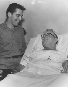 | Firefighter Eddie O'Brien with dad, Chief O'Brien, as he recovers from injuries at Mercy Hospital. |