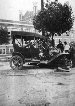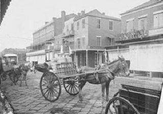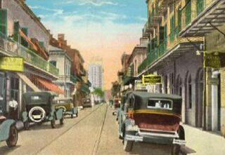 | Above: Unknown street in French Quarter; Left: Automobile accident on Canal Street; Warren Easton High School in background |
