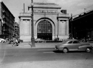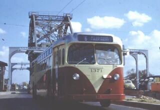 | NOPSI bus on St. Claude at bridge; 1952 |