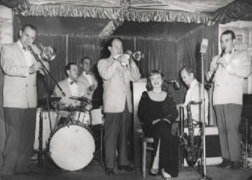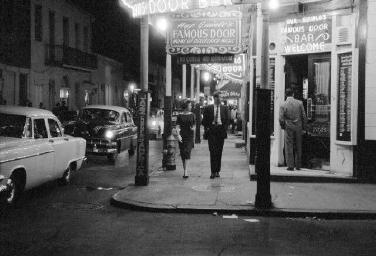 | The Famous Door on Bourbon Street, known for the number of famous people who have signed the front door. Left, 1950's; right, Sharkey Bonano and his Kings of Dixieland play at the Famous Door, 1940's. |