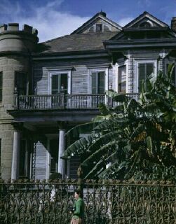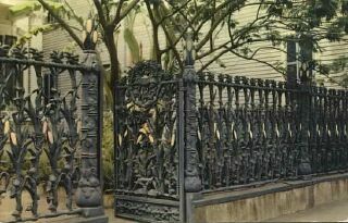 | Now The Cornstalk Hotel, this home on Royal Street was built in the early 1800's by Francois-Xavier Martin, a native of France. He authored the first history of Louisiana and was the second chief justice of the Louisiana Supreme Court. The cornstalk fence is one of the most photographed tourist stops in the French Quarter. Left and above, as the house and fence looked in 1941; below, as they look today. |