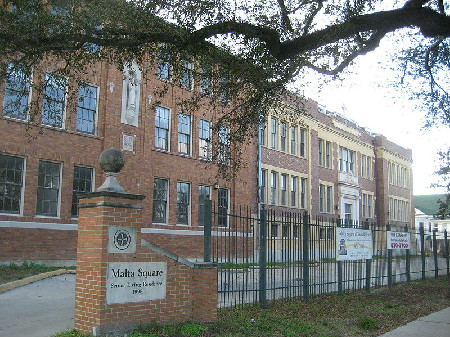 | The first Sacred Heart Parish church building on Canal Street (a small, 3-room, combination church and rectory) was dedicated in 1879. In its early years, the congregation was predominantly Irish. The church was built on land donated by Patrick Burk O'Brien, a New Orleans cotton broker. In 1882, a 2-room schoolhouse was added. By this time, a new church, with a seating capacity of 300-400, had been built. The present building was constructed in 1923. The school closed in 1998. Sacred Heart's school and convent buildings are now used as an assisted living facility for seniors. |