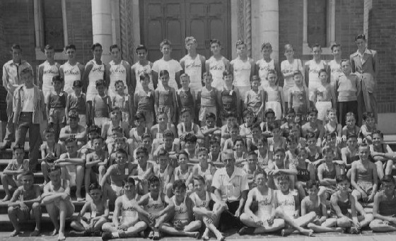 | Sacred Heart Track Team, 1945 - Sacred Heart track team won the Catholic League championship six years in a row in the 1940's. Father Dolan was in charge of sports during those years. |