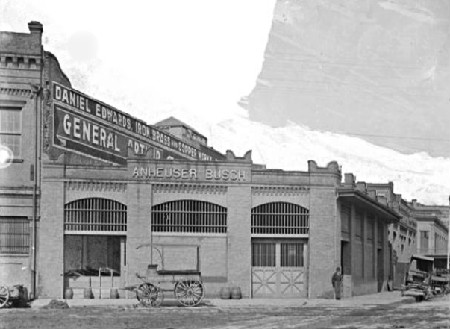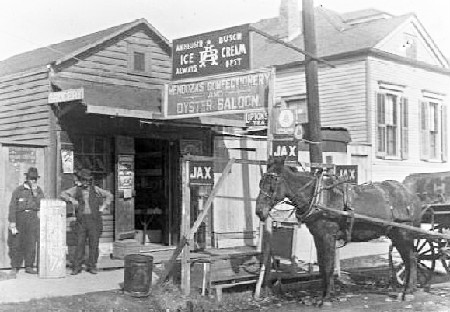 | Above: Anheuser-Busch Brewery, I believe this was Gravier Street. During Prohibition, Anheuser-Busch manufactured soft drinks & ice cream. Below, signs read, "Anheuser-Busch Ice Cream, Mendoza's Confectionery & Oyster Saloon." |