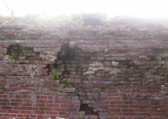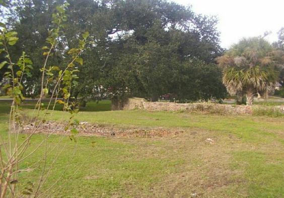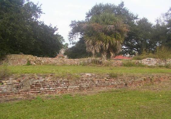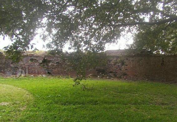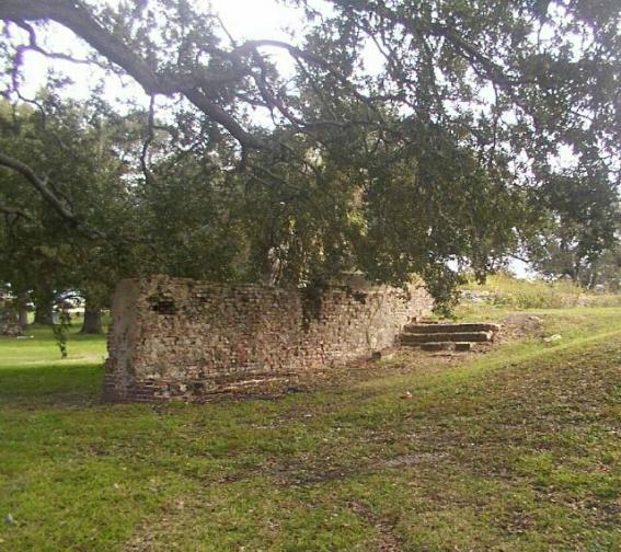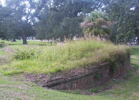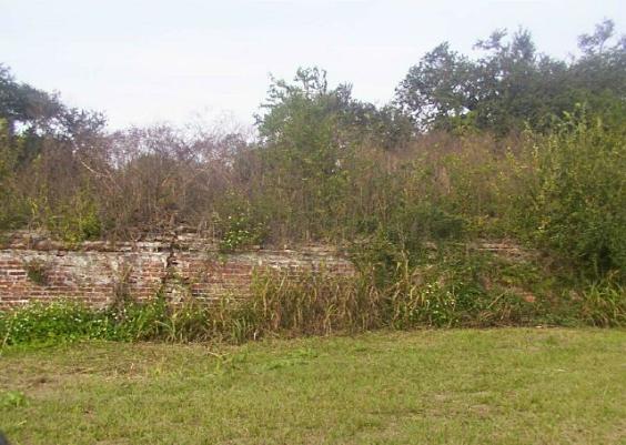 Front wall of battlement, as seen from Bayou St. John. Note the difference time has made, when you compare these photos with those taken in the 1930's, at the first link below. |