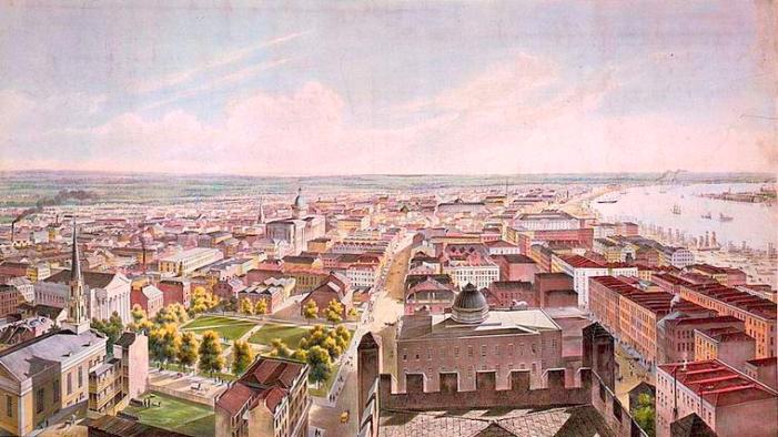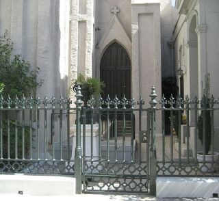 St. Patrick's Church The first church on this site was dedicated in 1833. The cornerstone of the present building was laid in 1838 by Bishop Antoine Blanc during the pastorate of Father James Mullon. The first service in the completed church was held in 1840. It was designed under the direction of architect James Gallier. The first St. Vincent de Paul conference in New Orleans was founded here in 1852. St. Patrick's is the oldest parish church outside of the French Quarter. It is regarded as the mother church of Uptown New Orleans. -- Taken from the plaque outside the church |