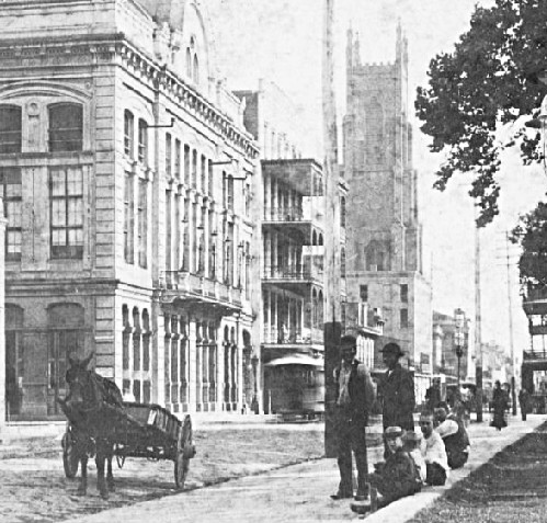 Camp Street with St. Patrick's in the background; ca. 1900. |