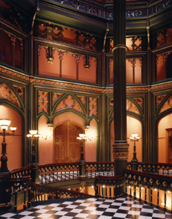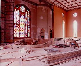 Above, the rotunda; above, right, the house chamber during restoration; right, portion of the fence before restoration. |